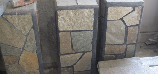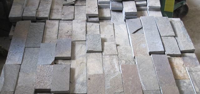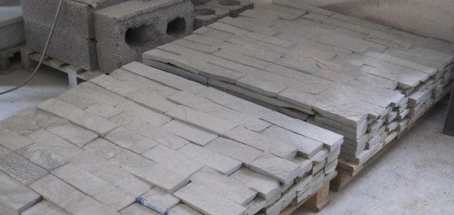 Tulisijojen muurauskivi, joissa toinen reuna sahattuna. Muurikivet luonnonreunaisena.